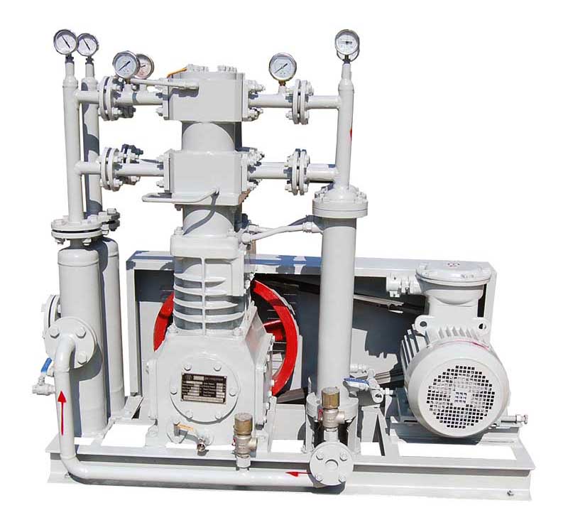 丁烷壓縮機(jī)壓縮機(jī)是我公司新型產(chǎn)品,它集壓縮機(jī)、氣液分離器、安全閥冷卻器、電動(dòng)機(jī)等為一體,成一完整的機(jī)組。具有功能多、體積小、重量輕、功率小、運(yùn)行平穩(wěn)可靠等特點(diǎn),并有良好的安全性能。由于采用獨(dú)特的無油潤滑設(shè)計(jì),氣缸內(nèi)無需用油潤滑,因而不會(huì)對(duì)介質(zhì)造成污染,使被輸送物質(zhì)保持純凈。本機(jī)設(shè)計(jì)成機(jī)組型式,許多管線上的附件都安裝在機(jī)組上,省卻了氣液分離器、穩(wěn)壓罐、安全閥、進(jìn)氣過濾器等,減小了機(jī)房的面積,減少了操作維護(hù)工作量,節(jié)省了投資。