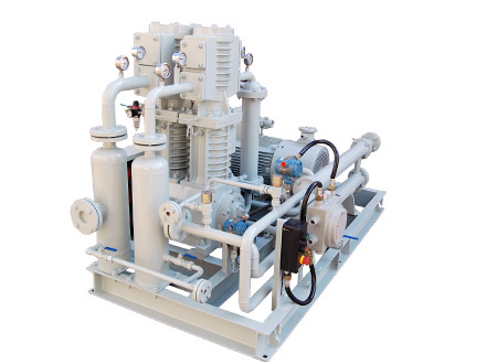 氫氣壓縮機(jī)壓縮機(jī)是我公司新型產(chǎn)品,它集壓縮機(jī)、氣液分離器、安全閥冷卻器、電動(dòng)機(jī)等為一體,成一完整的機(jī)組。具有功能多、體積小、重量輕、功率小、運(yùn)行平穩(wěn)可靠等特點(diǎn),并有良好的安全性能。它為輸送氫氣,可為用戶最大限度地創(chuàng)造經(jīng)濟(jì)效益。由于采用獨(dú)特的無油潤(rùn)滑設(shè)計(jì),氣缸內(nèi)無需用油潤(rùn)滑,因而不會(huì)對(duì)介質(zhì)造成污染,使被輸送物質(zhì)保持純凈。本機(jī)設(shè)計(jì)成機(jī)組型式,許多管線上的附件都安裝在機(jī)組上,省卻了氣液分離器、穩(wěn)壓罐、安全閥、進(jìn)氣過濾器等,減小了機(jī)房的面積,減少了操作維護(hù)工作量,節(jié)省了投資。